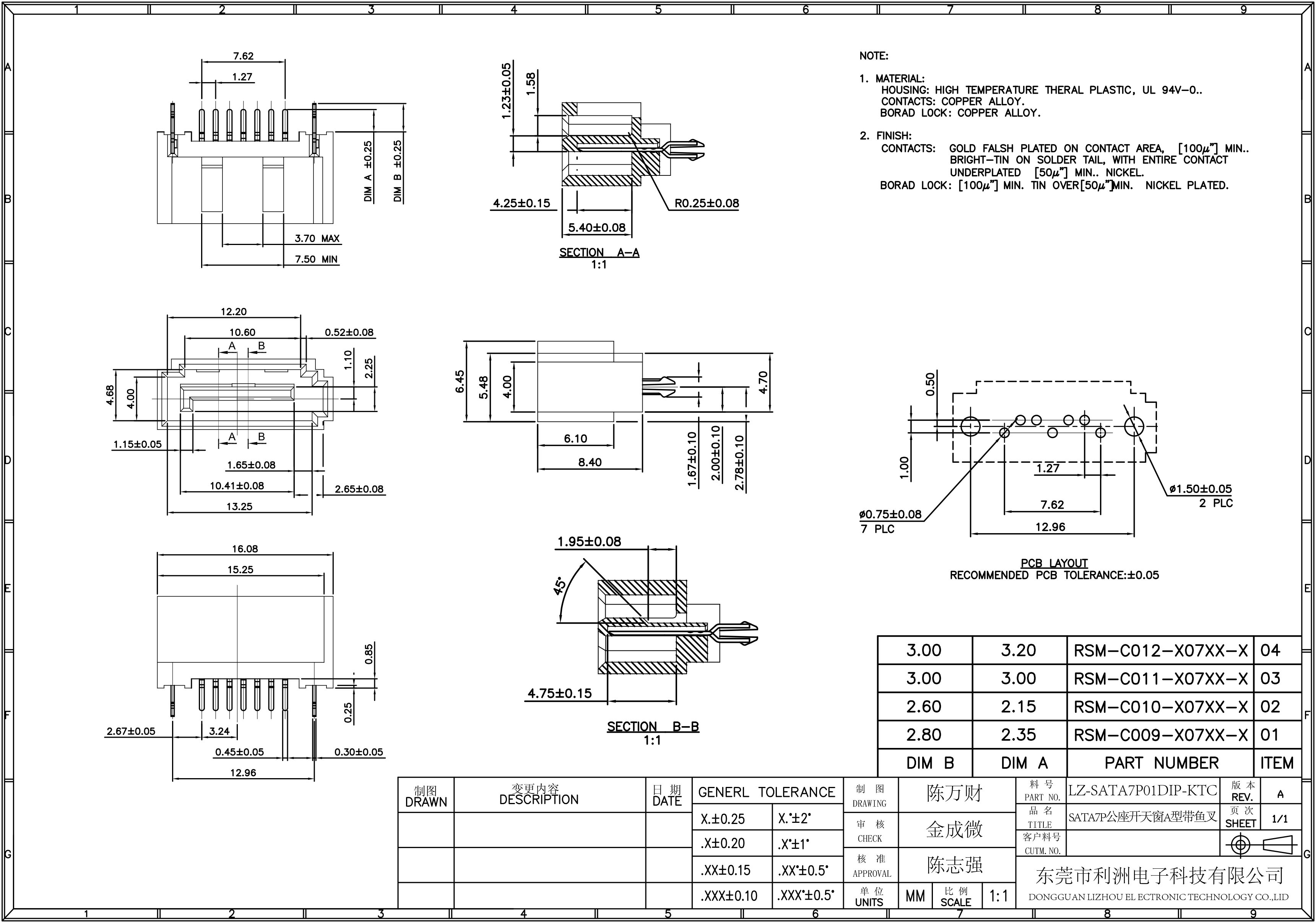 Finish Contact: gold falsh plated on contact area [100u"]min bright-tin on solder tail with entire contact underplated [50u"]min nickel