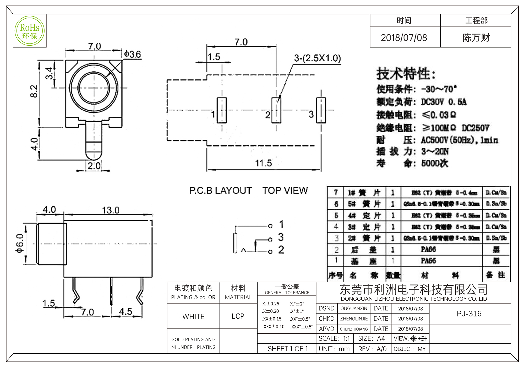 PJ-317耳机插座3.5mm五脚插件