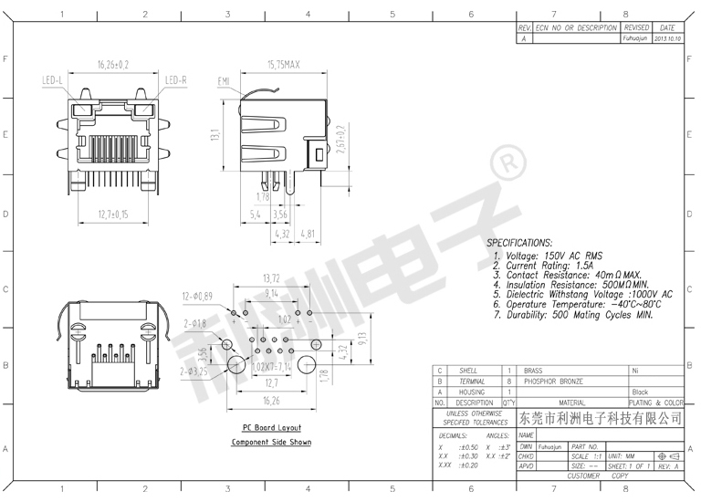 Durrability: 500 Mating Cycles MIN