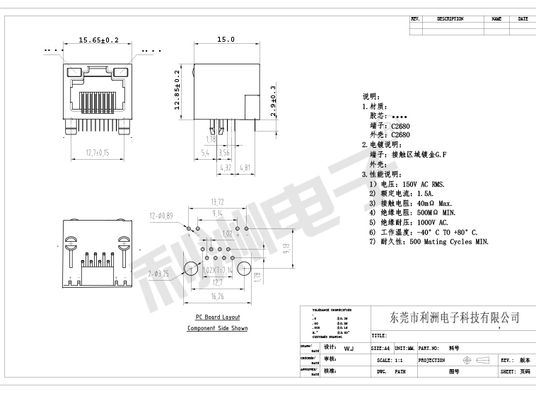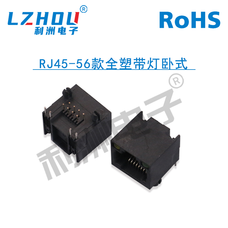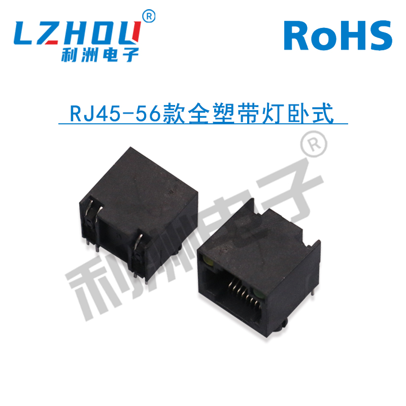 RJ45网络插座56-8P8C带灯全塑卧式RJ45网口连接器水晶头RJ母座