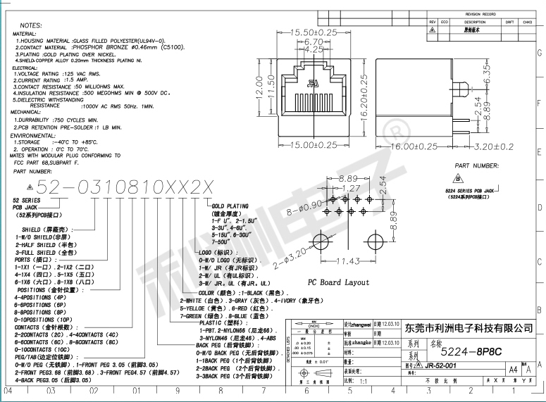 RJ45网络插座52款8P8C无灯全塑5224立式直插RJ45网口连接器母座