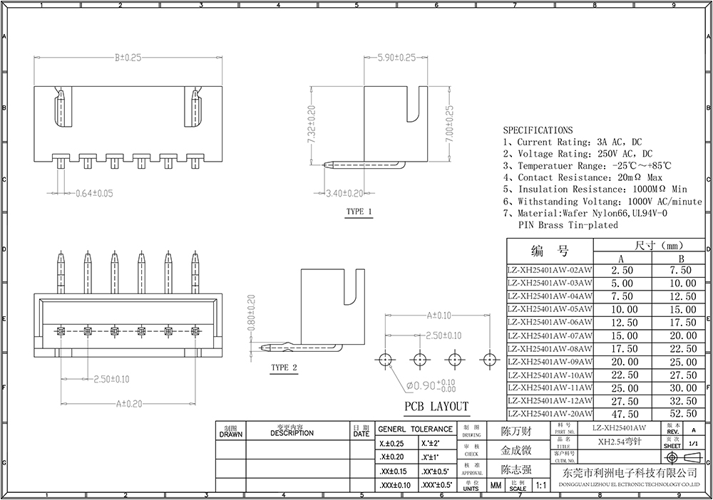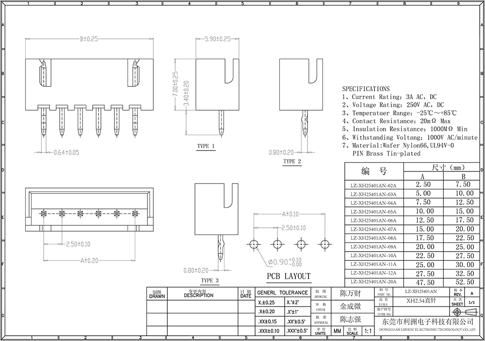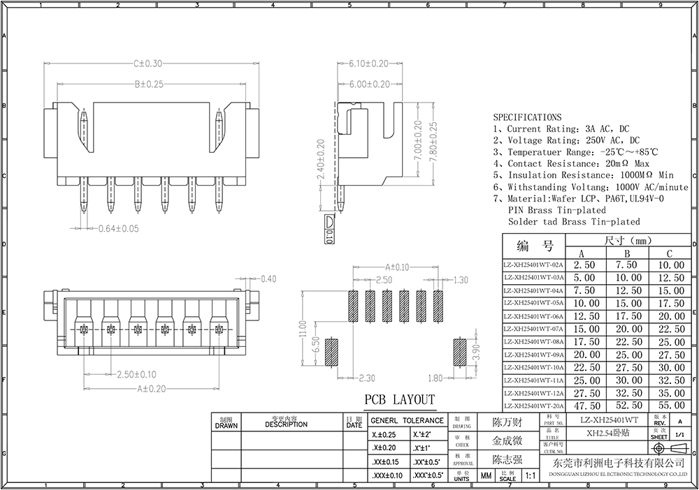 XH2.54mm间距系列