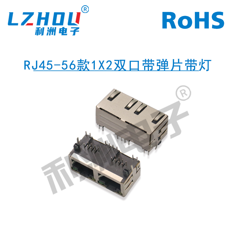 RJ45-56款1X2双口带弹片带灯