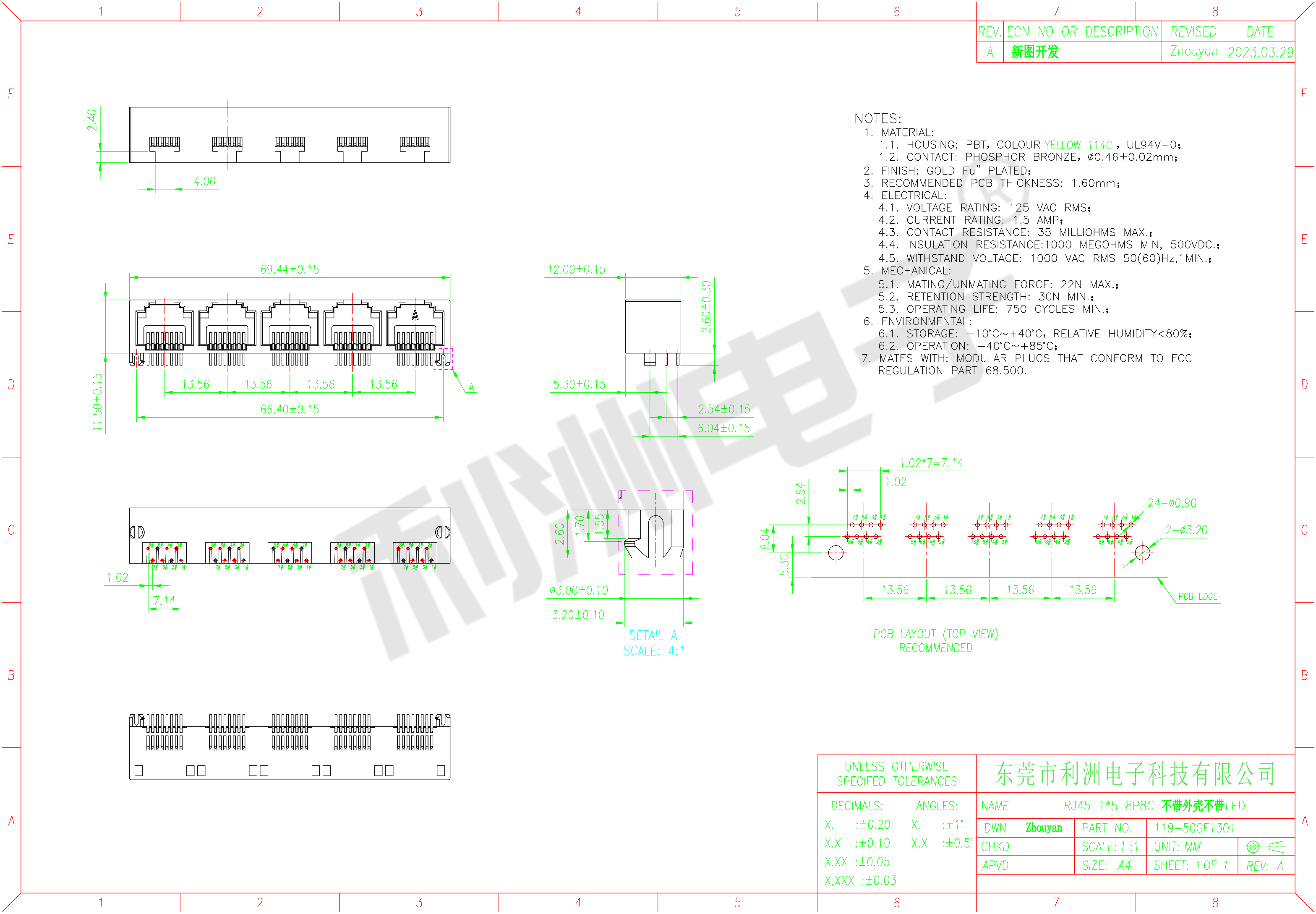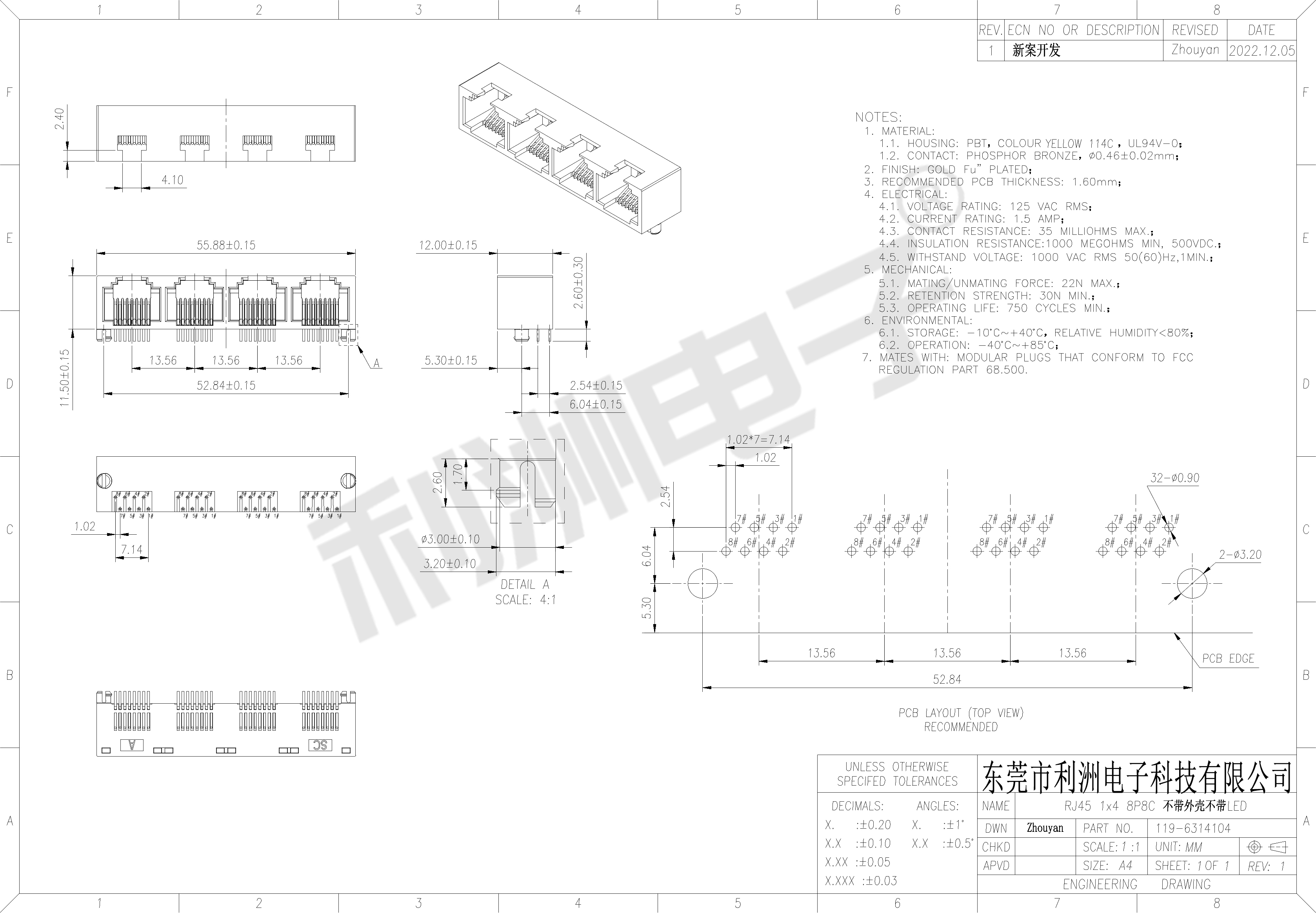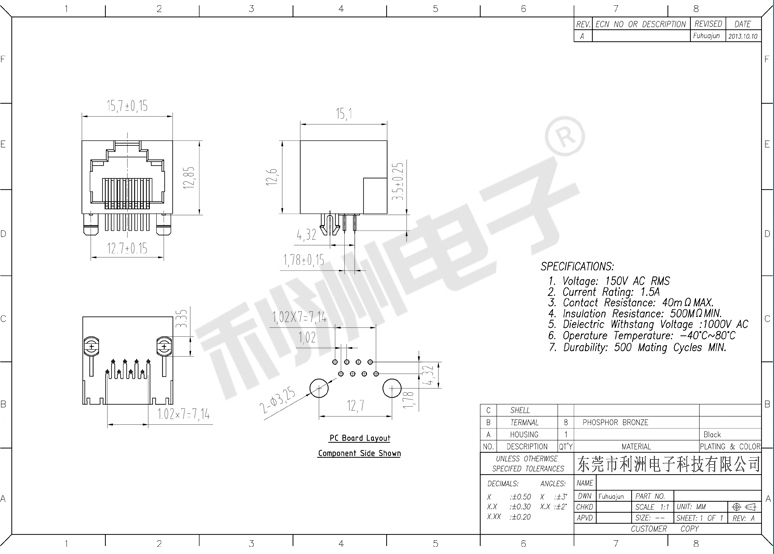 Durrability: 750 Mating Cycles MIN