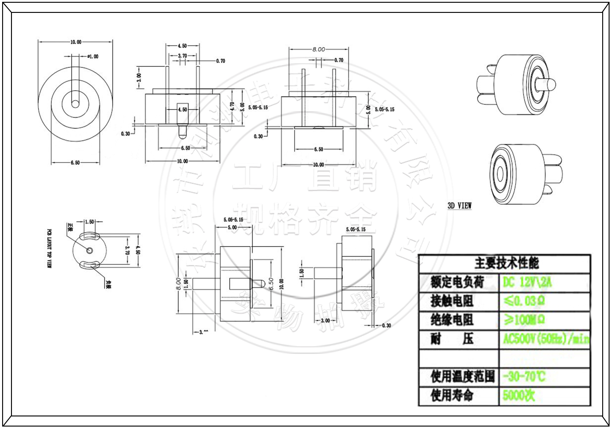 耐压: AC500V(50Hz)/min