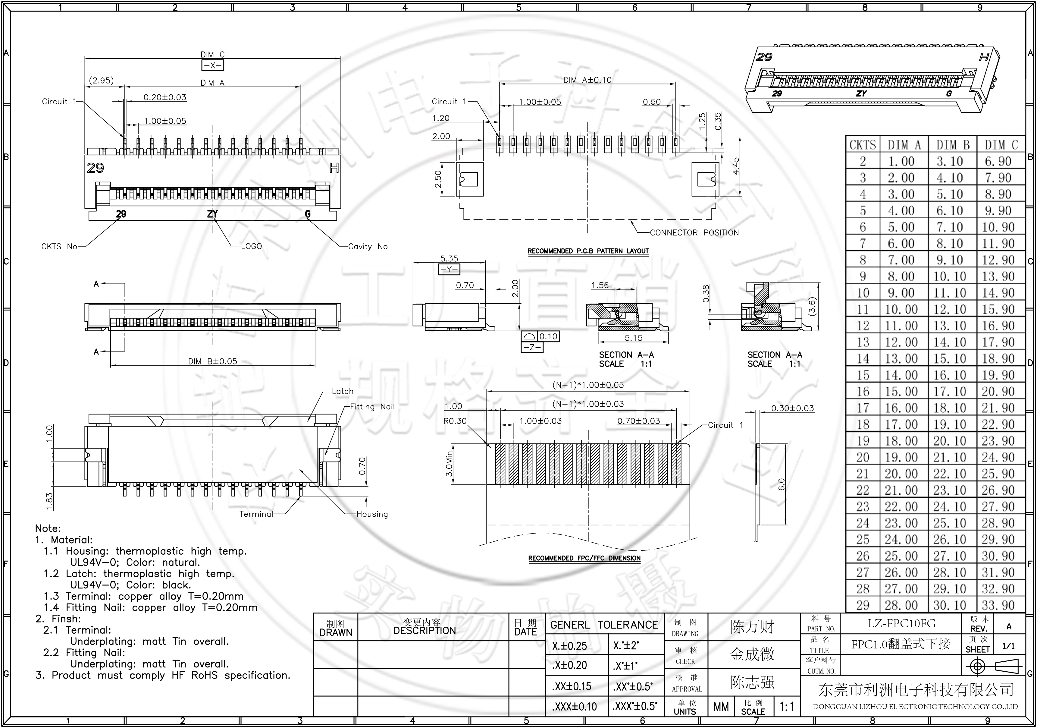 FPC1.0mm间距翻盖式下接SMT
