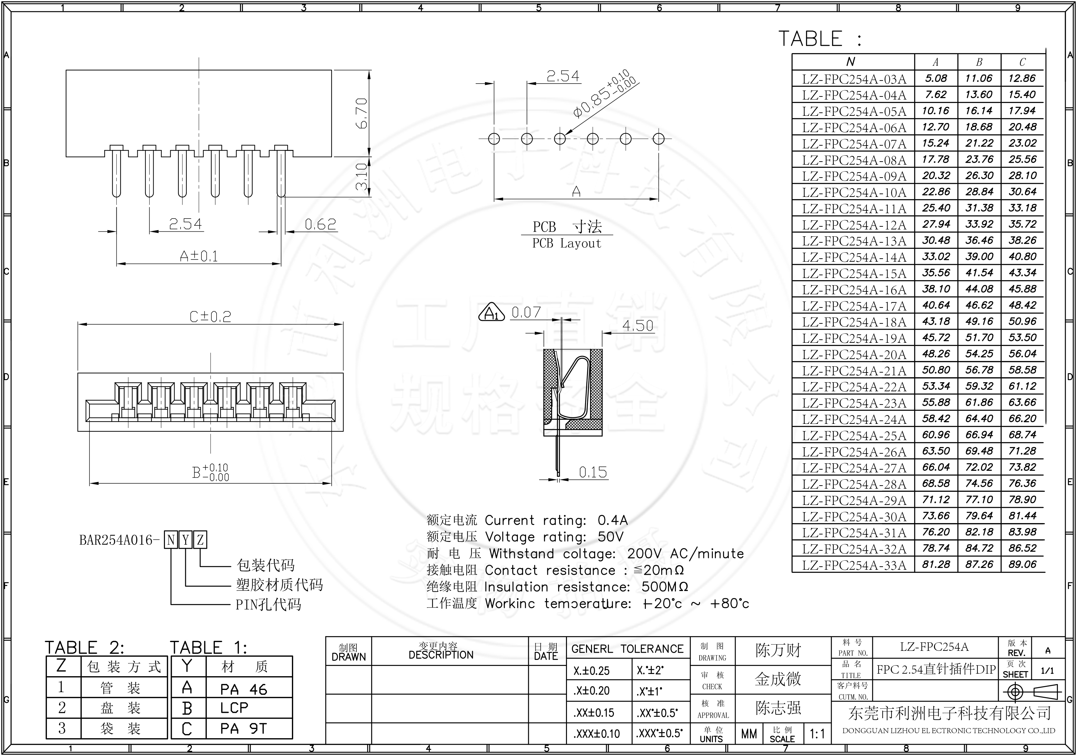 FPC2.54mm间距直针插件DIP