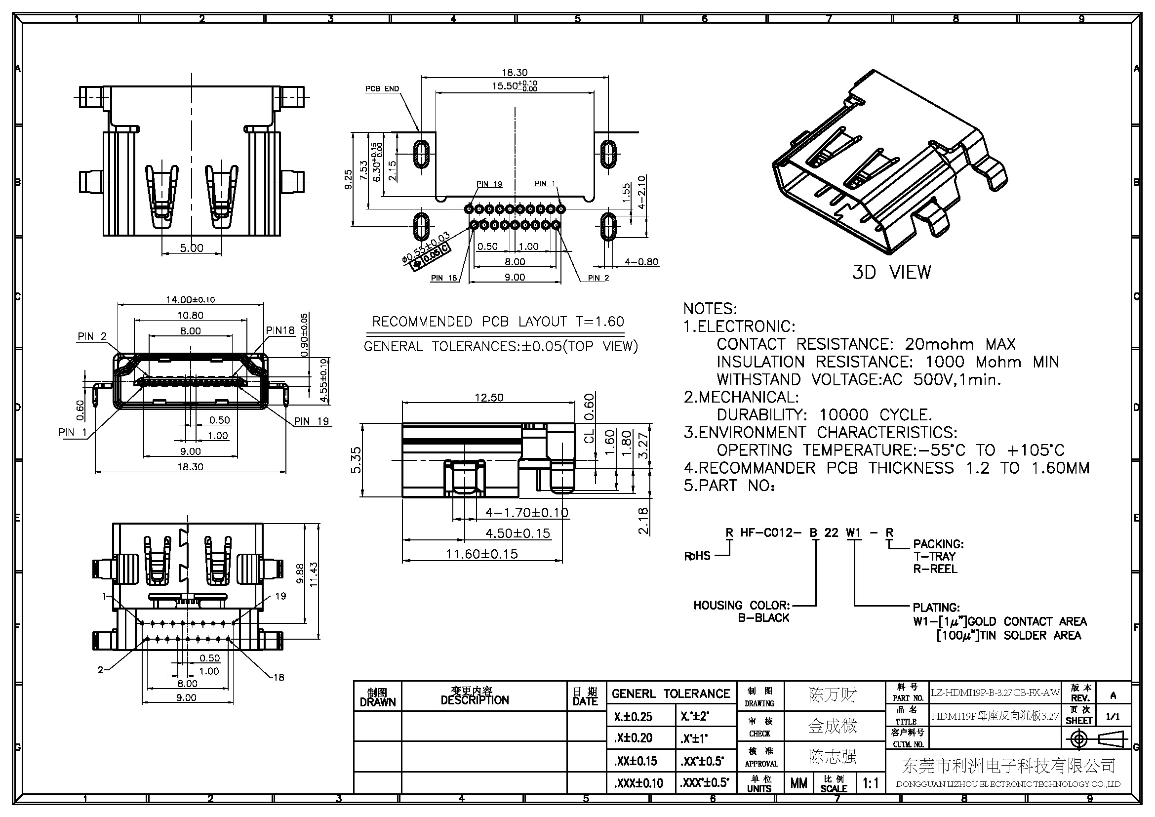 HDMI-19P母座 反向沉板式