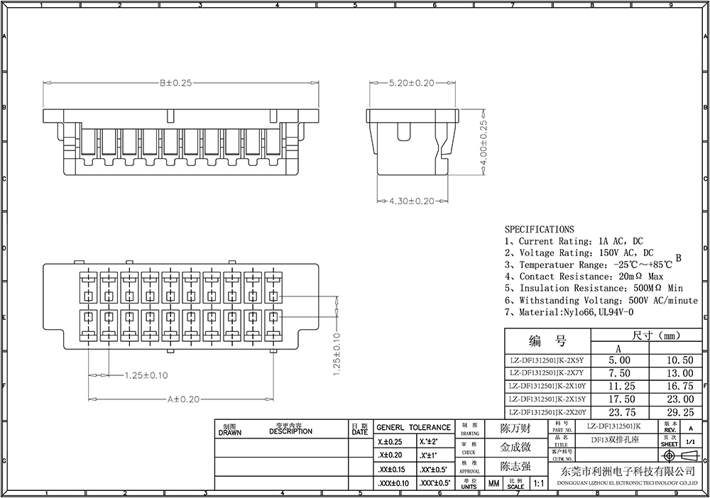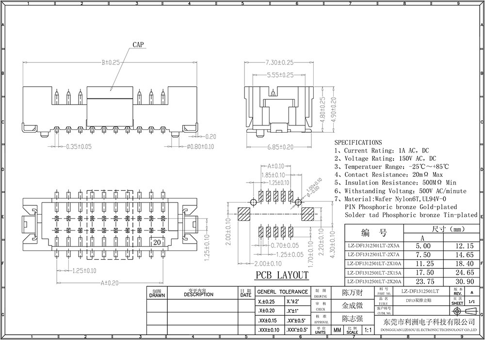 Contact resistance: 20mΩ Max