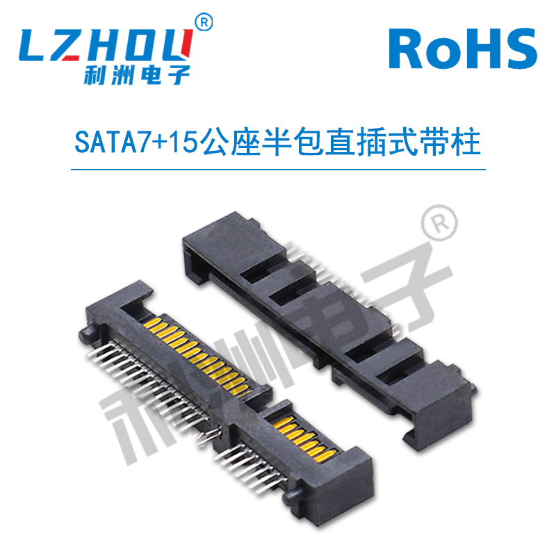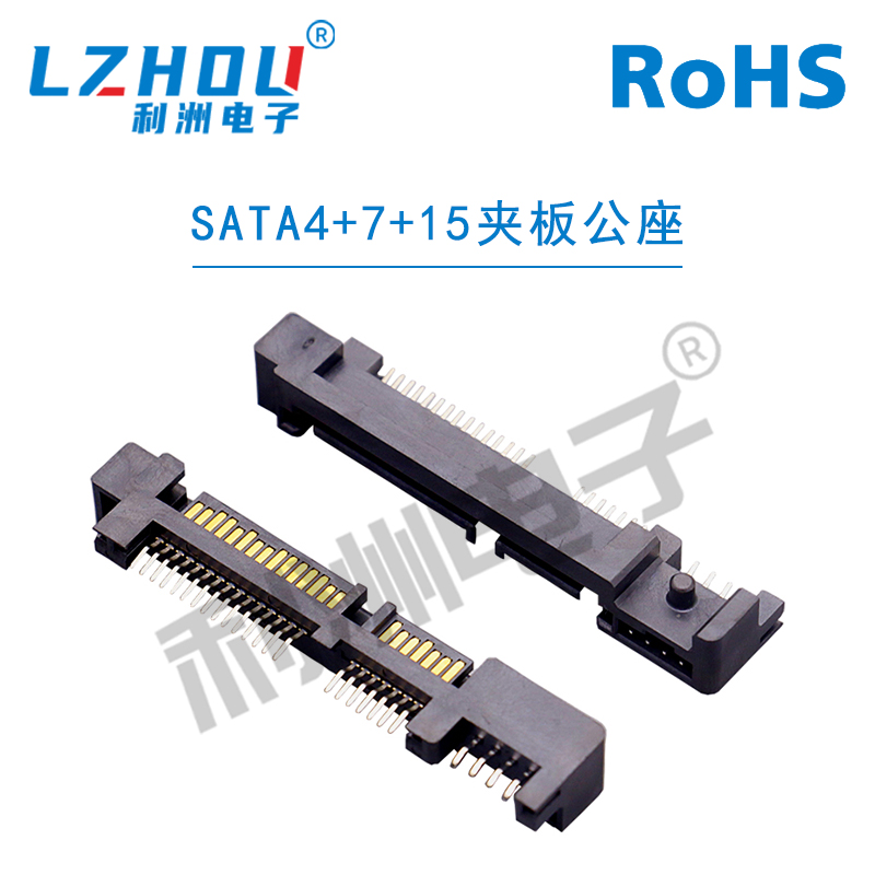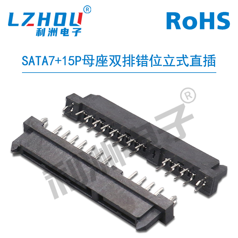 SATA7+15P公座双排错位直针两侧带固定柱