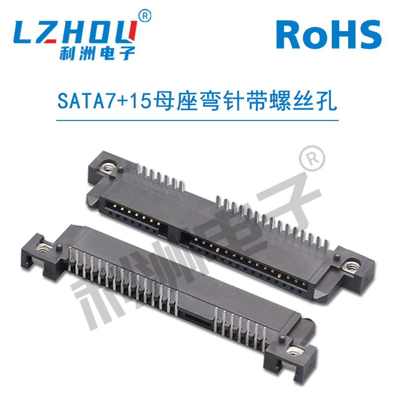 SATA7+15母座弯针带螺丝孔