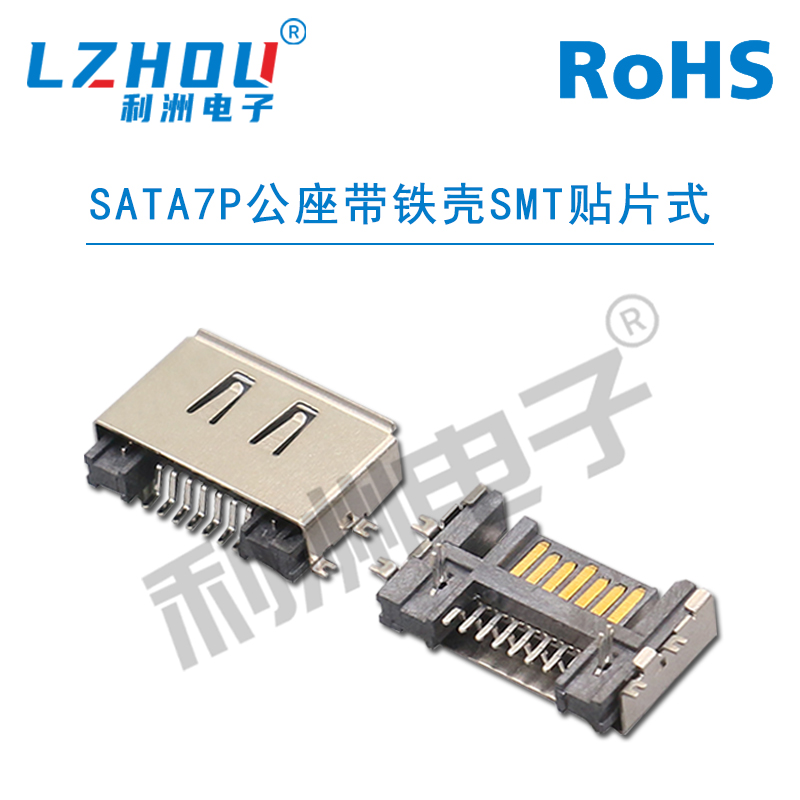 SATA7P公座带铁壳SMT贴片式