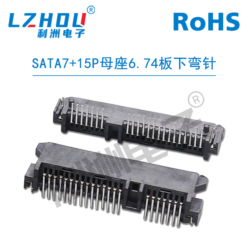 SATA7+15P母座 6.74板下弯针